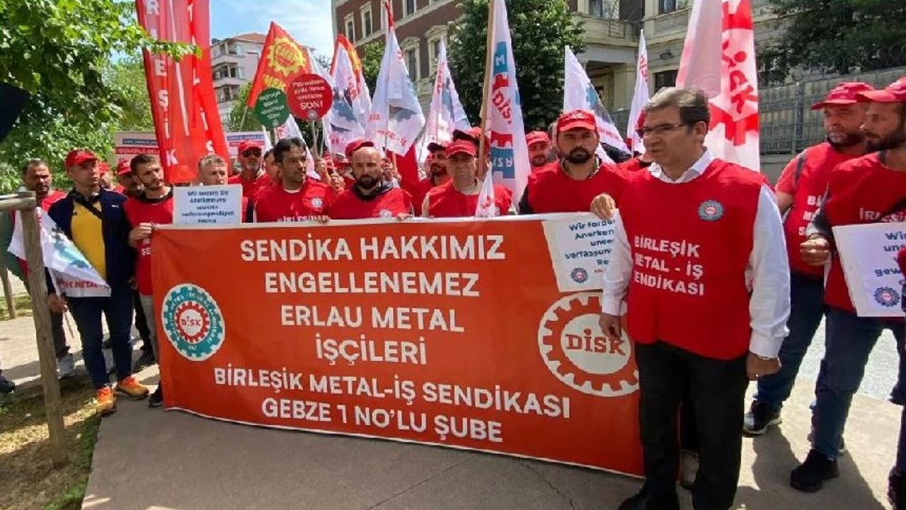 Gebze’deki Alman sermayeli Erlau Metal'in inşaat aksesuarları üretilen fabrikasında çalışan 57 işçiden Birleşik Metal-İş Sendikası’nda örgütlü 25’i işten çıkarıldı. İşverenin sendikaya karşı “yetki itiraz davası” açarak toplu sözleşme önünde engel yaratması üzerine geçen ay başlayan protestolar, örgütlü işçilerin kod 49 ile tazminatsız şekilde işten atılmalarının ardından Almanya Başkonsolosluğu önüne taşındı. İstanbul Beyoğlu’daki konsolosluk binası önünde polis gözetiminde bir araya gelen işçiler ve sendika temsilcileri “Sendika haktır engellenemez”, “Erlau işçisi direnişin simgesi. Yaşasın örgütlü mücadelemiz” sloganlarını attı.
