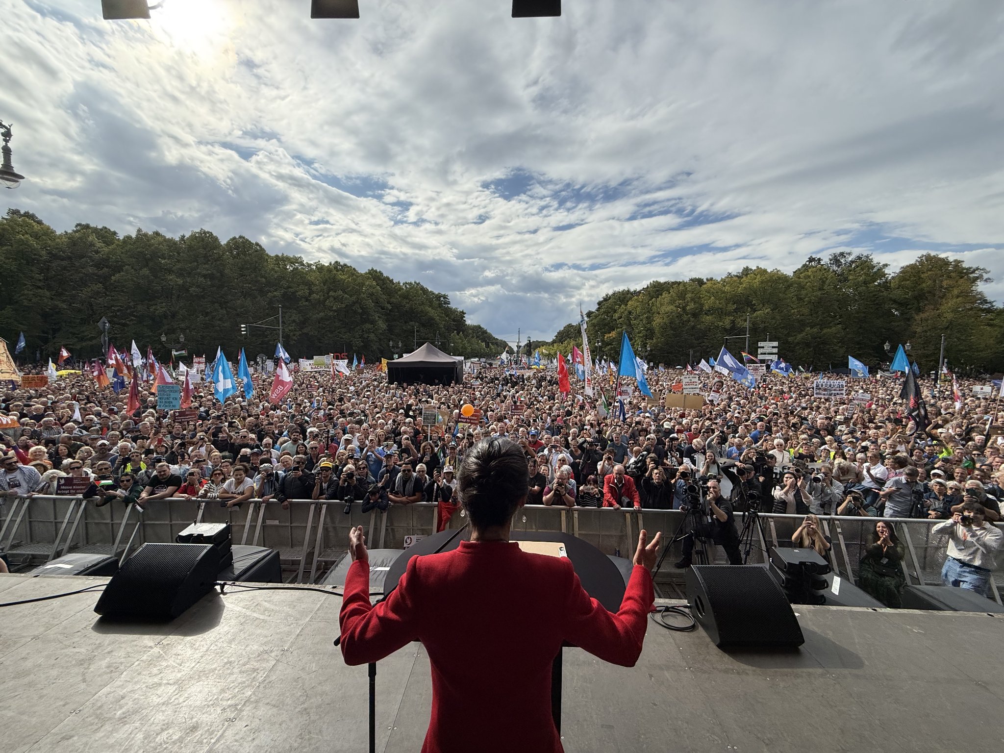 Gösteri, BSW (Sahra Wagenknecht İttifakı) lideri Sahra Wagenknecht, ünlü Alman tiyatro ve sinema sanatçısı Dieter Hallervorden, rapçiler Massiv ve Bausa ile birçok tanınmış ismin çağrısıyla gerçekleşti.