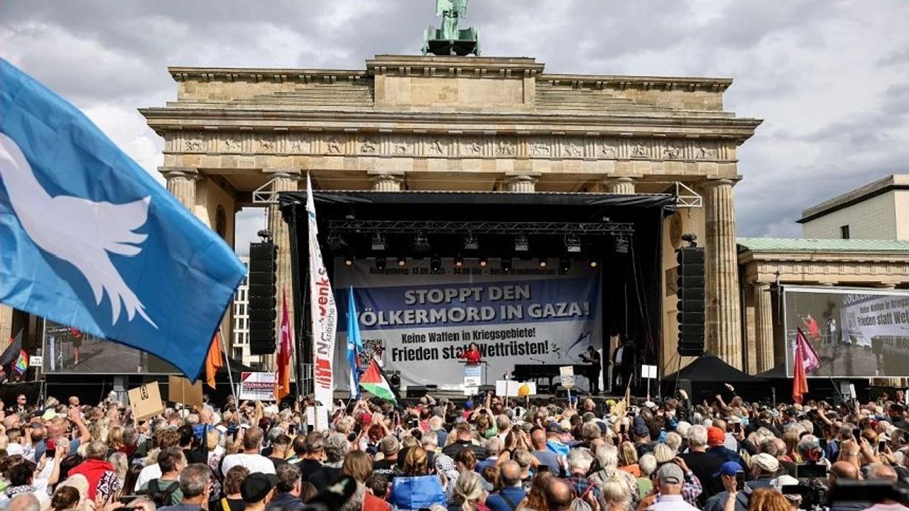 Organizatörler, Almanya hükümetinden “Gazze’de ve Ukrayna’da acilen barış müzakerelerine öncülük etmesini” ve “savaş bölgelerine silah sevkiyatını durdurmasını” talep etti.