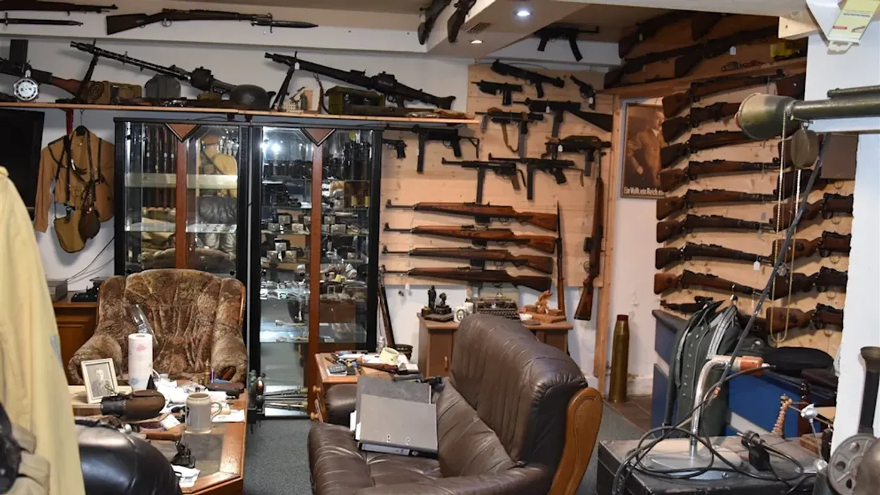 Polis, sanığın evinin altındaki gizli bölmede II. Dünya Savaşı’ndan kalma Alman ve Sovyet silahlarının yanı sıra modern makineli tüfekler buldu.