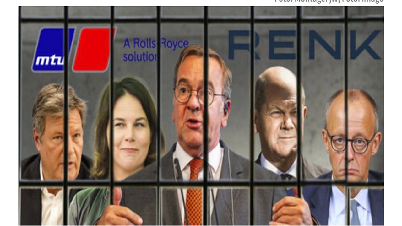 Sanıklar arasında Scholz, Baerbock, Pistorius, Habeck ve Merz'in yanı sıra, Dışişleri Bakanlığı'ndan Johann Wadephul, Ekonomi Bakanlığı'ndan Katherina Reiche ile Rolls-Royce Solutions GmbH'den Jörg Stratmann, Renk Group'tan Alexander Sagel ve Susanne Wiegand, Dynamit Nobel Defence'den Michael Humbek bulunuyor.