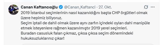 "2019 İstanbul seçimlerinin nasıl kazanıldığını başta CHP örgütleri olmak üzere hepimiz biliyoruz.