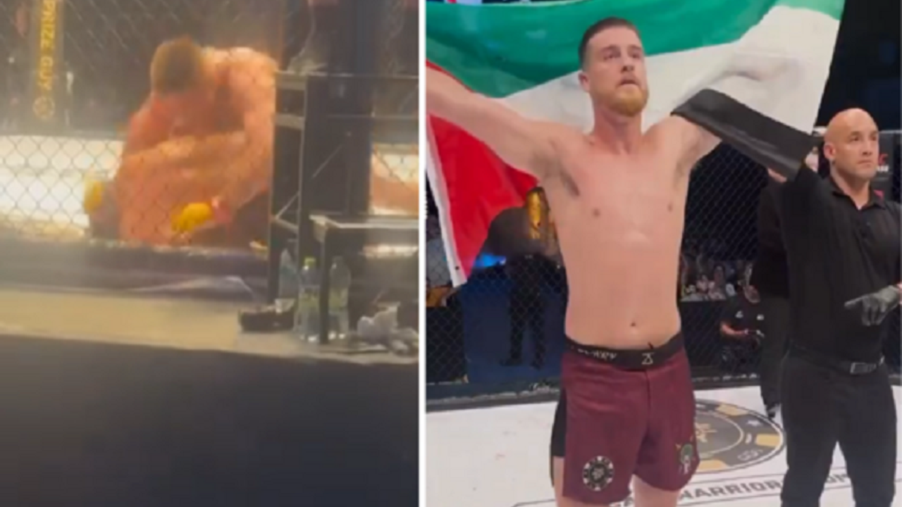 McCorry, maçı kaybeden ve yerde yatan Farage'ın karşısında Filistin bayrağı açarak izleyicileri selamladı ve "Özgür Filistin" diye haykırdı.