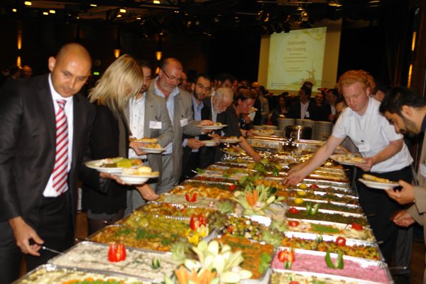 Çeşitli kurumlardan çok sayıda Alman ve yabancı üst düzey davetlinin hazır bulunduğu iftar proğramında, misafirlerin görevlilerce karşılanarak numaralanmnş masalardaki yerlerine oturtulmaları, mükemmel sahne ve ses düzenlemesi, önemli mesajların verildiği konuşmalar, canlı klasik müzik ile, Merkez Camii içindeki Afiyet Restaurant’ta hazırlanan ve açık büfe olarak sunulan 30 çeşit yiyecekle birlikte 9 tepsi baklava tatlısı, bu müstesna gecenin dikkkat çeken noktalarıydı.