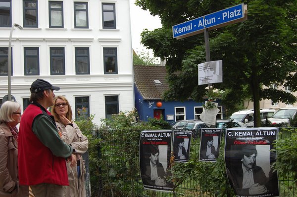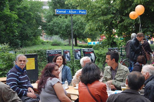 Türk ve alman basınının yoğun ilgi gösterdiği eylemde Kemal Altun inisiyatifinden Robert Jarowoy ve Adil Yiğit günün önemi üzerine birer konuşma yaptılar. Alkışlarla desteklenen açılışta, katılımcılar arasında tanıdıklarımızdan emekli Prof.Dr Garweg, tiyatro ve sinema sanatçısı Zeki Şahin,Tiyatro sanatçısı Resul Önal, Sol Parti yetkilisi ve Altona meclis üyesi Robert Jarowoy , devrimci eğitmen Hasan Burgucu, yaşlı çınar gazetecilerden Dieter Schütt , gazeteci Karaman Yavuz, Avrupa Postası’ndan Kemal Altun’u yakından tanıyan Adil Yiğit, 68 kuşağı devrimcilerinden Kalender Mike,Yeşiller Partisi Altona meclis üyesi Yusuf Uzundağ, Ayşe Burgucu, taksicilerin yüzakı komünist Hüseyin, Ramazan Avcı inisiyatifinden Lale, Nilüfer, Erol , Andre, Beata, Christian ve isimlerini sayamadığımız bir çok orta yaşlı Alman ve Türkiyeli demokrat-devrimcilerinin Kemal Altun’u kendilerinden biri olarak görerek hertürlü fedakarlık içinde bulunmaları görmeye değerdi.