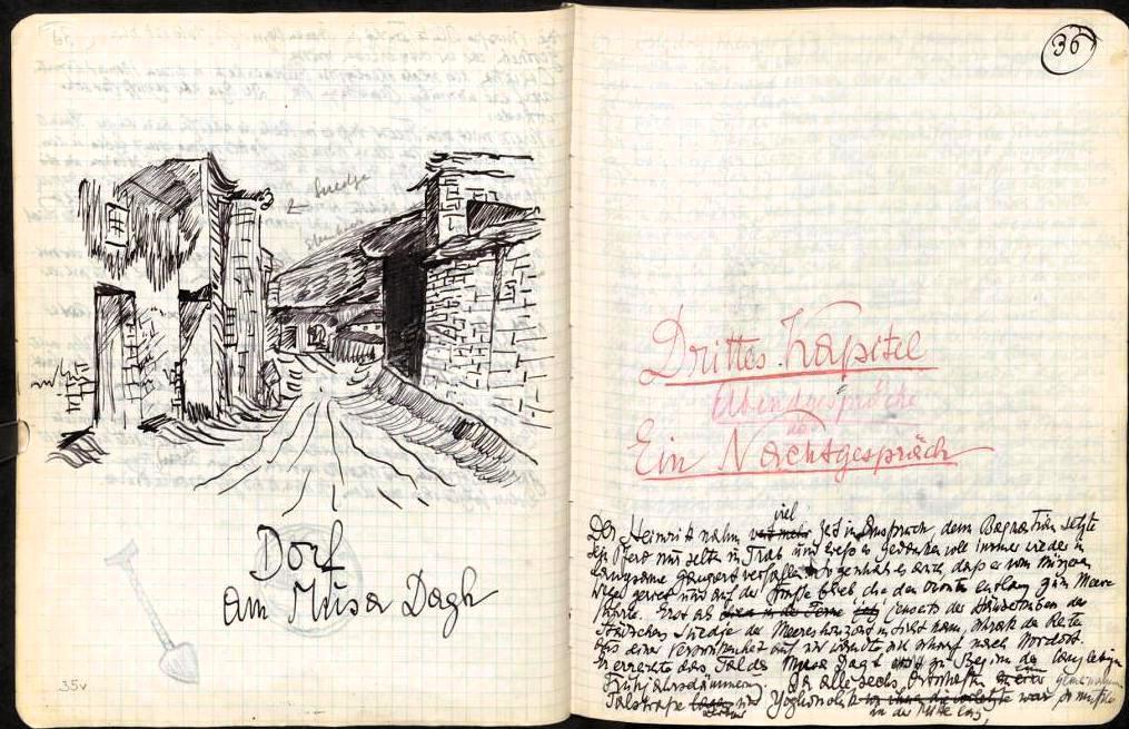 Werfel'in çizimiyle kitabın üçüncü bölümü taslağı