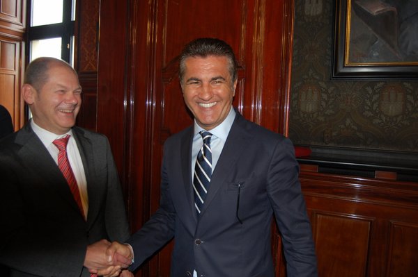 Sözlerine “Evet, Hamburg şehrinin İstanbul ile çok benzerlikleri ve ortak yanları vardır” diye devam eden Sarıgül, basınla görüşmesinden önce Hamburg Eyalet başbakanı ve birinci belediye başkanı SPD’li Olaf Scholz ile basına kapalı bir görüşme yaptı. SPD Eyalet milletvekili Kazım Abacı’nın ev sahipliğinde Hamburg Türk basınına açıklamalarda bulunan Mustafa Sarıgül, “Olaf Scholz ile çok güzel bir görüşme yaptık. Almanya’nın liman kenti Hamburg’da sayın belediye başkanı ve Eyalet başbakanını ziyaret ettik.