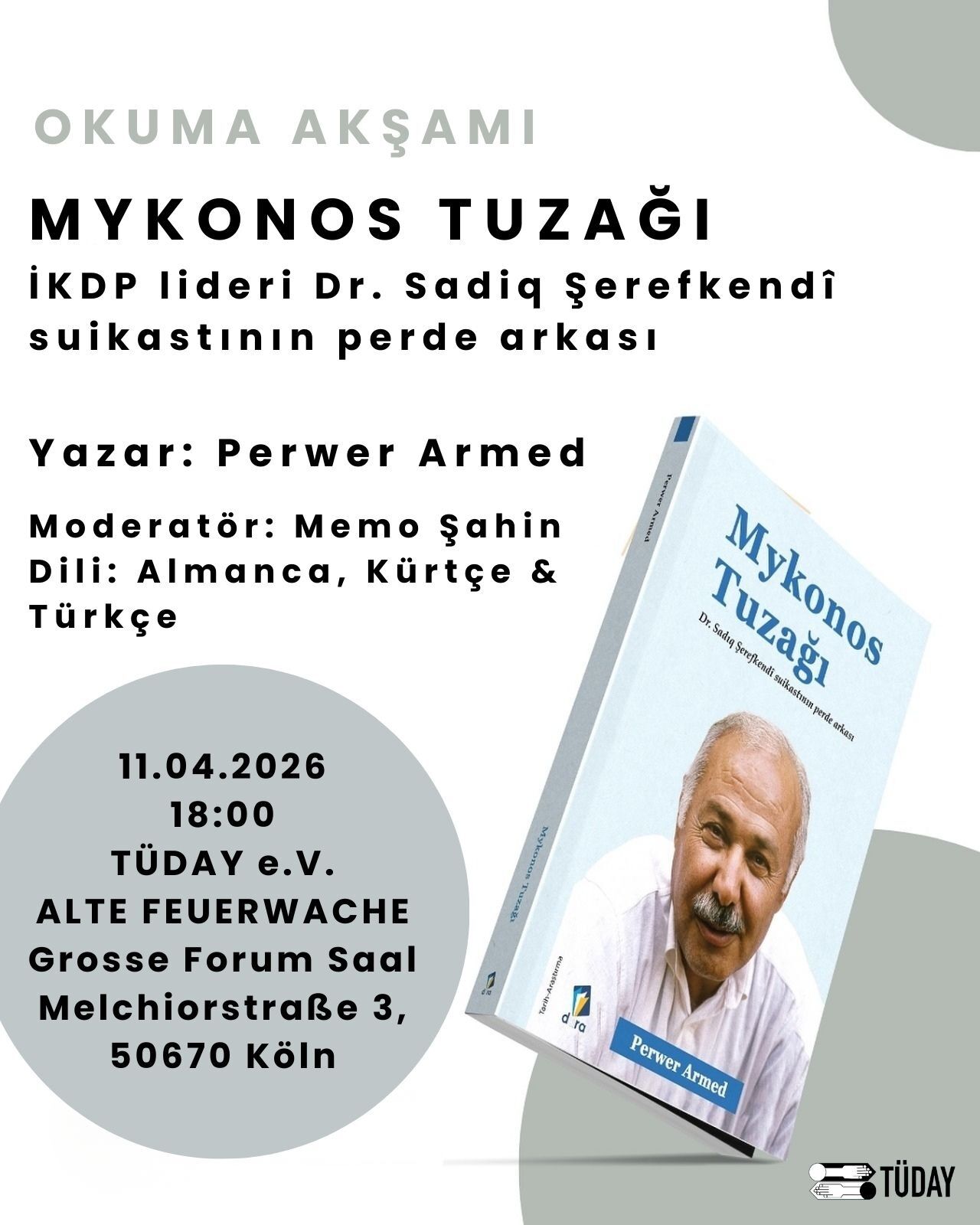 Perwer Armed, Almanya’nın farklı şehirlerinde düzenlenen kitap buluşmaları kapsamında okurlarıyla bir araya gelerek kitabının yazım sürecini ve Mykonos suikastına dair araştırmalarını paylaştı.