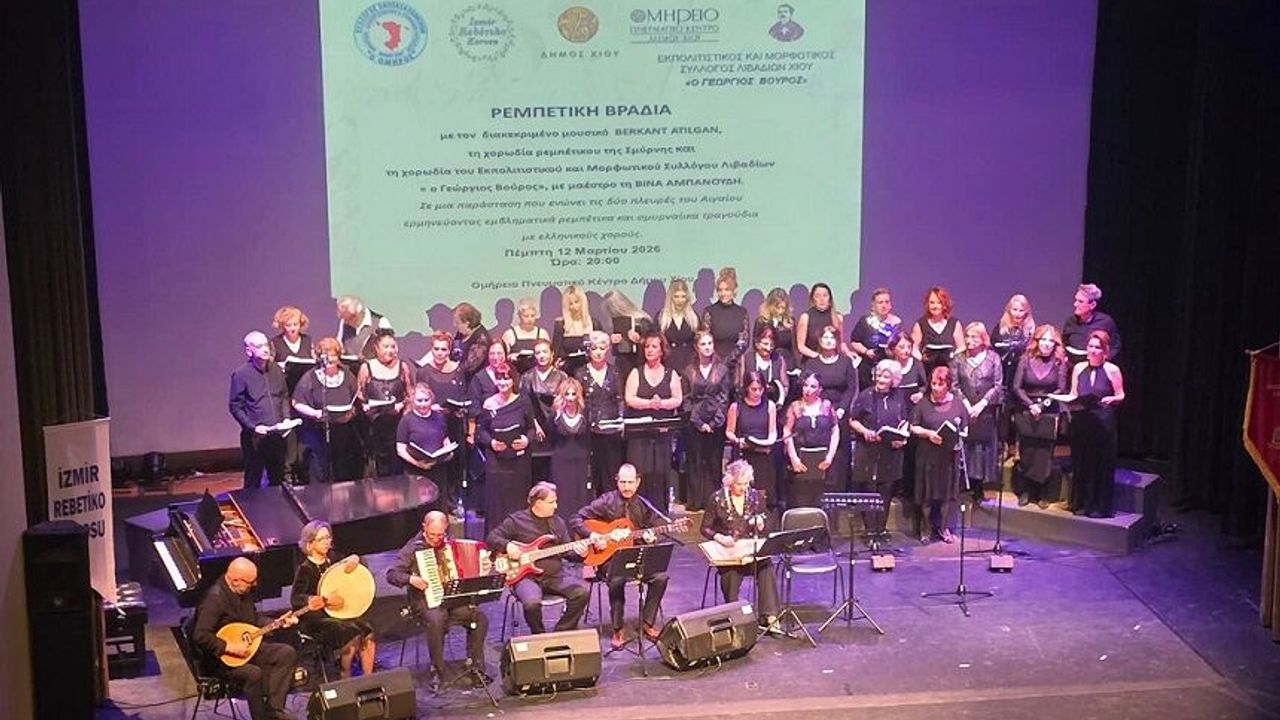 Sakız Adası Homeros Kiralık Odalar, Apartlar ve Turistik Konutlar Derneği, kültür etkinlikleri kapsamında 12 Mart Perşembe gecesi Omirio Kültür Merkezi’nde düzenlediği "Köklerin Dönüşü" temalı rebetiko konseriyle duygu ve tarih dolu bir geceye imza attı. Sakız ve İzmir’in bu müzikal buluşması, Ege’nin iki yakasında paylaşılan ortak köklerin gücünü ortaya koyan canlı bir kültür köprüsü oluşturdu.
