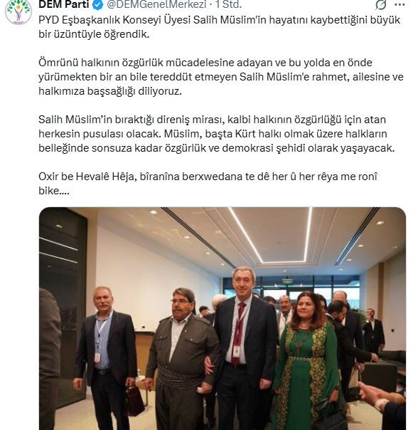 DEM Parti'nin X hesabından yapılan paylaşımda, Müslim'in "Ömrünü halkının özgürlük mücadelesine adayan" bir isim olduğu ifade edildi.